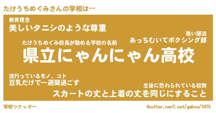 | 男性向けラノベタイトル風あだ名 | 『たけうちめぐみの憂鬱』 |