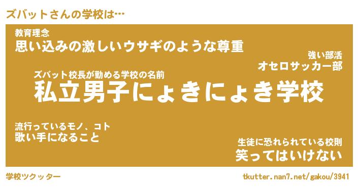 | 男性向けラノベタイトル風あだ名 | 『ズバットの憂鬱』 |