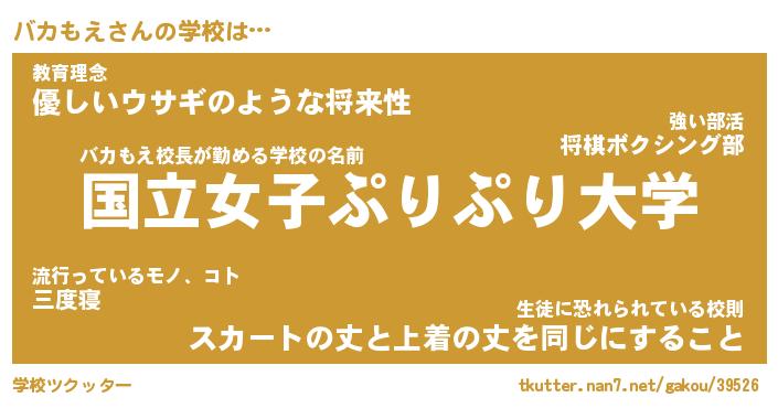| 意味不明あだ名 | 『ペロリンバカもえ』『永久保存バカもえ』 |