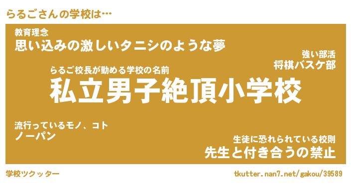 | 男性向けラノベタイトル風あだ名 | 『らるごの憂鬱』 |
