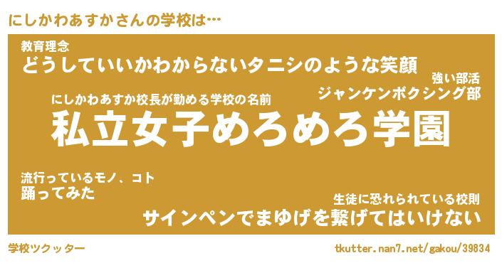 | ヘコむあだ名 | 『にしっふぃ~』『つくし』『にしを』 |