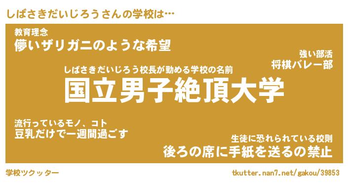 | 男性向けラノベタイトル風あだ名 | 『しばさきだいじろうの憂鬱』 |
