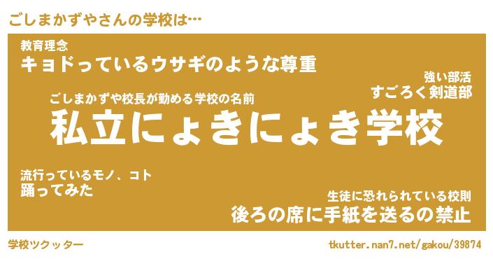 | ヒーロー風カッコイイあだ名 | 『スーパーゴシマカズヤ』『魔戒騎士ゴシ』 |
