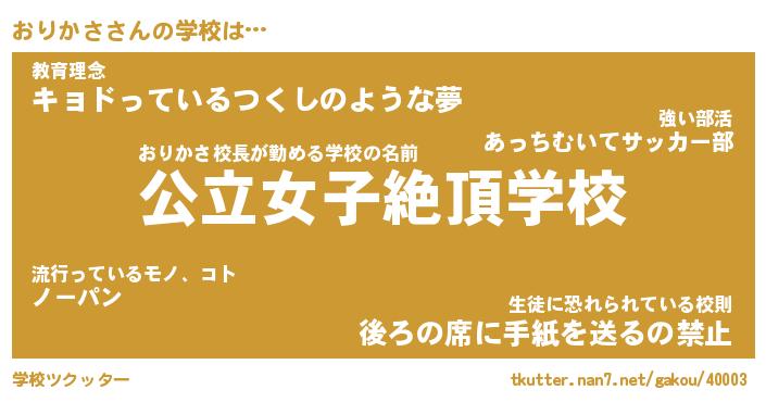 | 意味不明あだ名 | 『ペロリンおりかさ』『永久保存おりかさ』 |