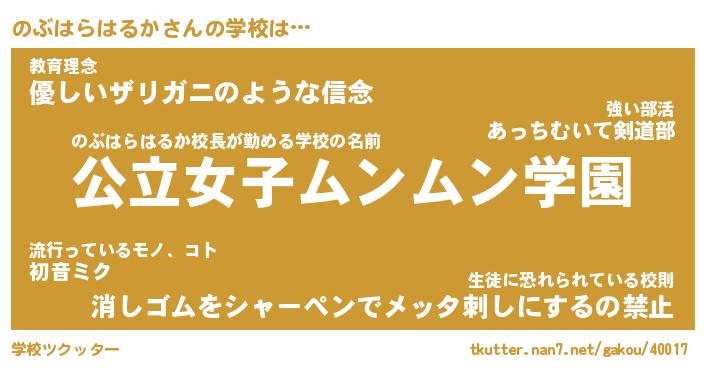 | 男性向けラノベタイトル風あだ名 | 『ノブハラハルカアートオンライン』 |