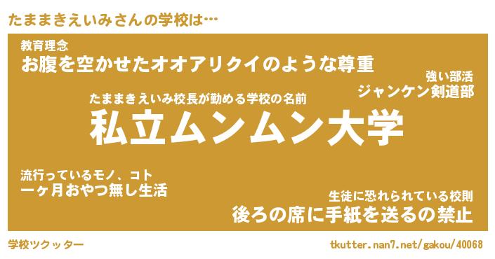 | 男性向けラノベタイトル風あだ名 | 『たままきえいみの憂鬱』 |