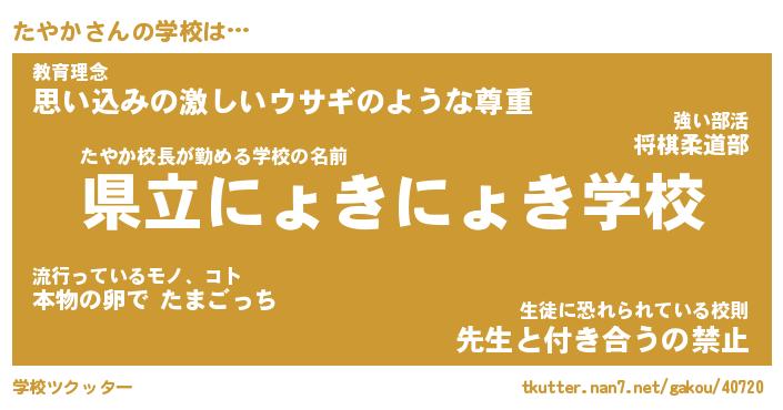 | 男性向けラノベタイトル風あだ名 | 『たやかの憂鬱』 |