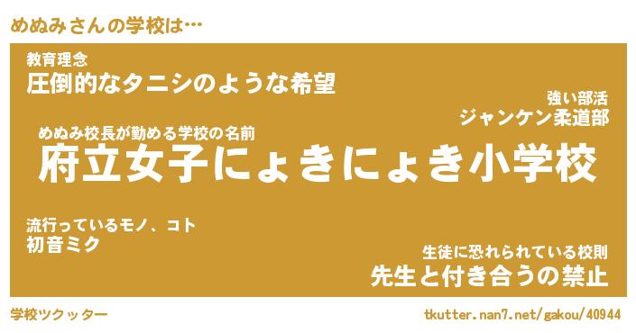 | ヘコむあだ名 | 『めぬにゅー』『豆乳』『めぬお』 |
