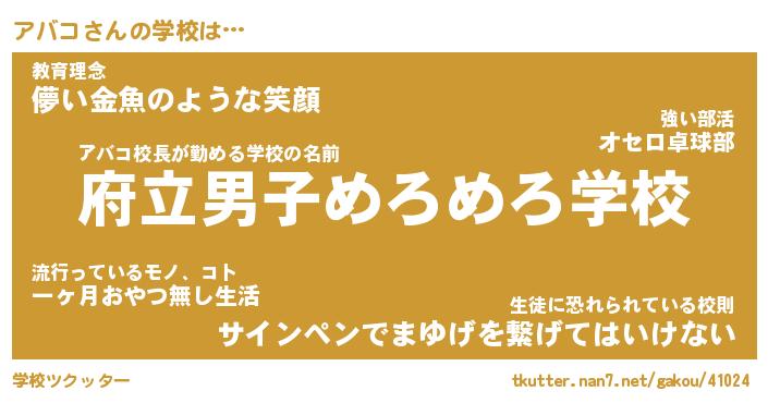 | ヒーロー風カッコイイあだ名 | 『スーパーアバコ』『ウルトラアバコマン』 |