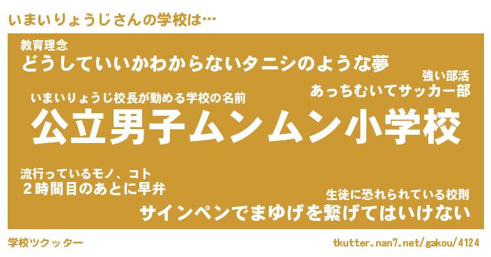| 男性向けラノベタイトル風あだ名 | 『いまいりょうじの憂鬱』 |