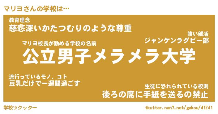 | ヒーロー風カッコイイあだ名 | 『スーパーマリヨ』『ウルトラマリヨマン』 |