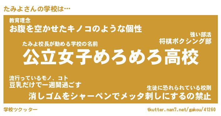 | ファンタジー風あだ名 | 『タミフェル』『エターナルタミヨー』 |