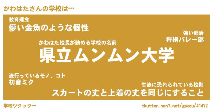| 男性向けラノベタイトル風あだ名 | 『かわはたの憂鬱』 |