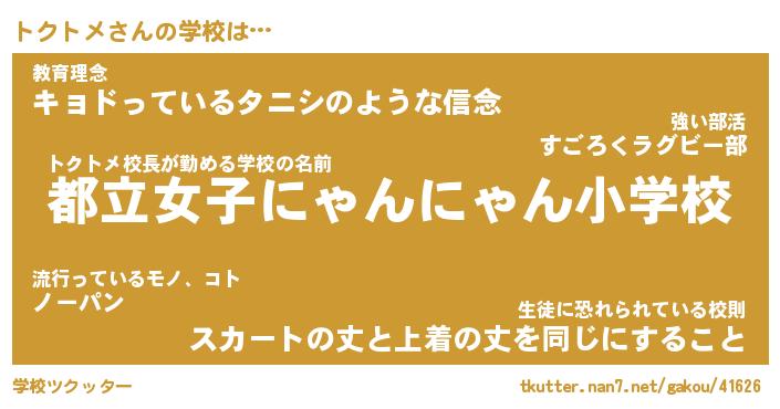 | ファンタジー風あだ名 | 『トクフェル』『エターナルトクトメー』 |