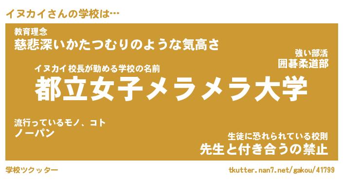 | 意味不明あだ名 | 『ペロリンイヌカイ』『永久保存イヌカイ』 |