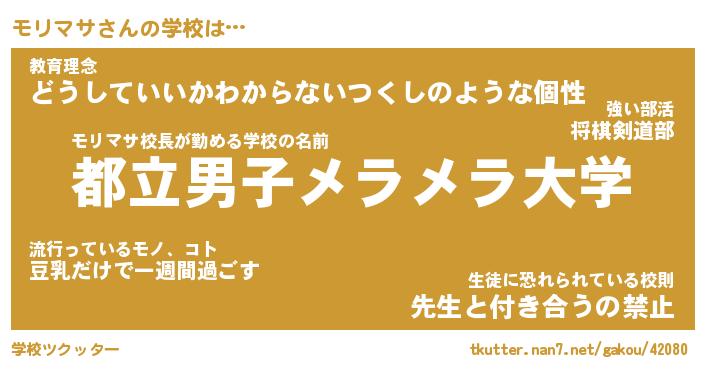 | 意味不明あだ名 | 『ペロリンモリマサ』『永久保存モリマサ』 |