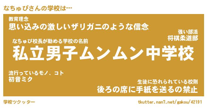 | 男性向けラノベタイトル風あだ名 | 『なちゅぴの憂鬱』 |
