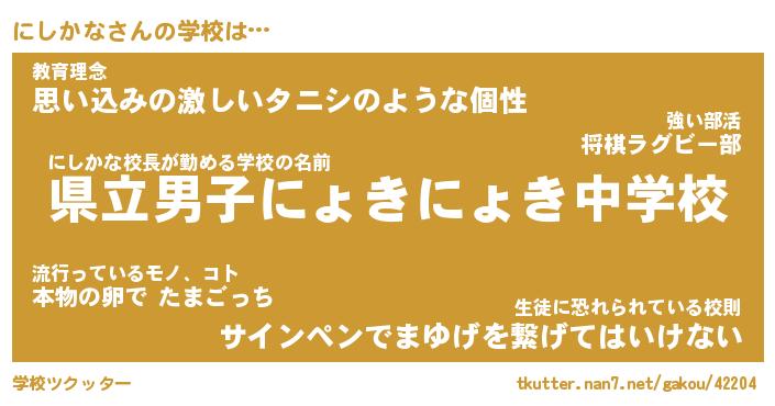 | ポケモン風あだ名 | 『ニシチュウ』『ニシカダネ』 |