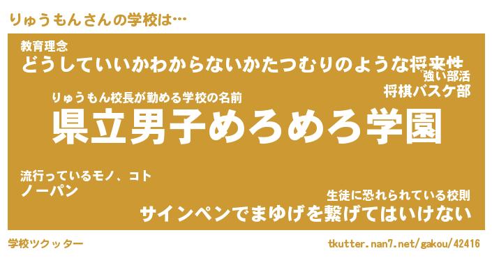 | 男性向けラノベタイトル風あだ名 | 『リュウモンアートオンライン』 |