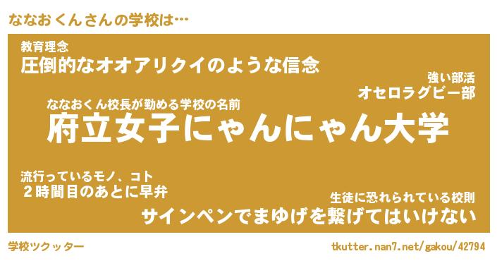 | ヘコむあだ名 | 『ななもー』『牛乳』『ななお』 |