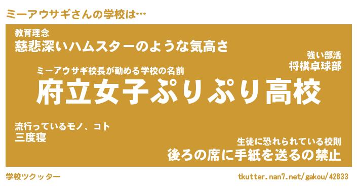| ヒーロー風カッコイイあだ名 | 『スーパーミーアウサギ』『天弓騎士ミー』 |