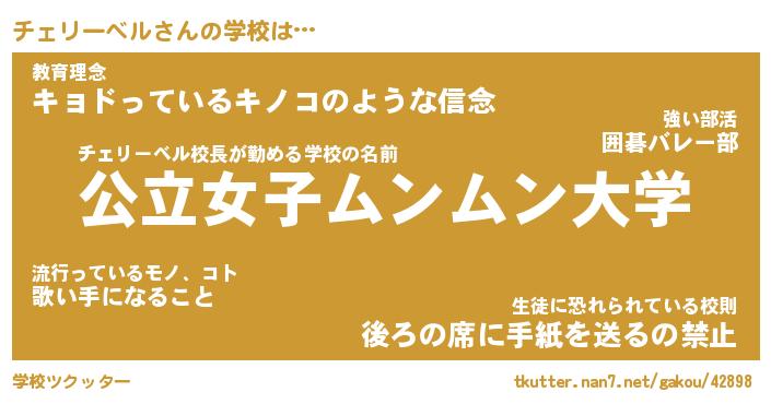 | 恥ずかしいあだ名 | 『プリティーチェリーベル』『チェっちょ』 |