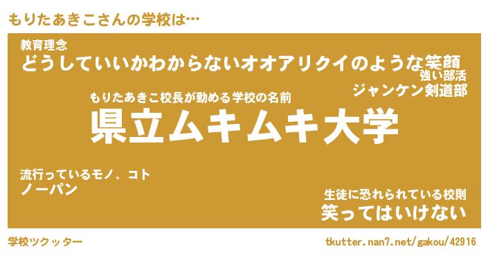 | 肩書あだ名 | 『もりたあきこ社長』『もりたあきこ教頭』 |