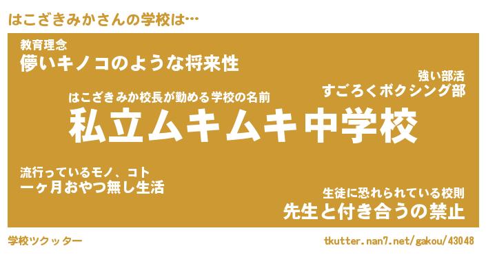 | ヒーロー風カッコイイあだ名 | 『スーパーハコザキミカ』『銀牙騎士ハコ』 |