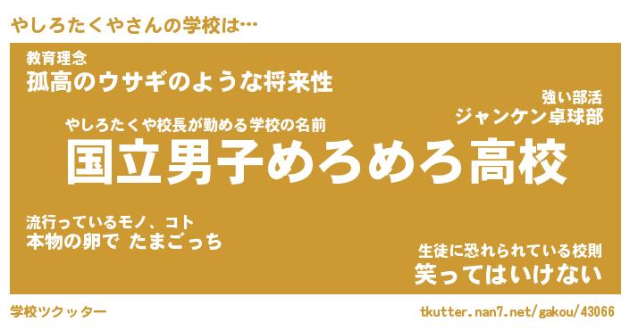 | 伝説のあだ名 | 『不死鳥のスナイパーやしろたくや』 |