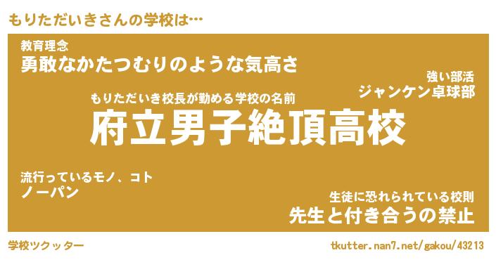 | ヒーロー風カッコイイあだ名 | 『スーパーモリタダイキ』『黄金騎士モリ』 |