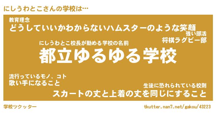 | 恥ずかしいあだ名 | 『プリティーにしうわとこ』『にしっちょ』 |