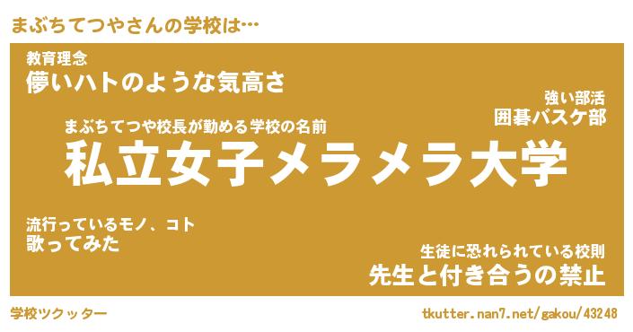 | 肩書あだ名 | 『まぶちてつや社長』『まぶちてつや塾長』 |