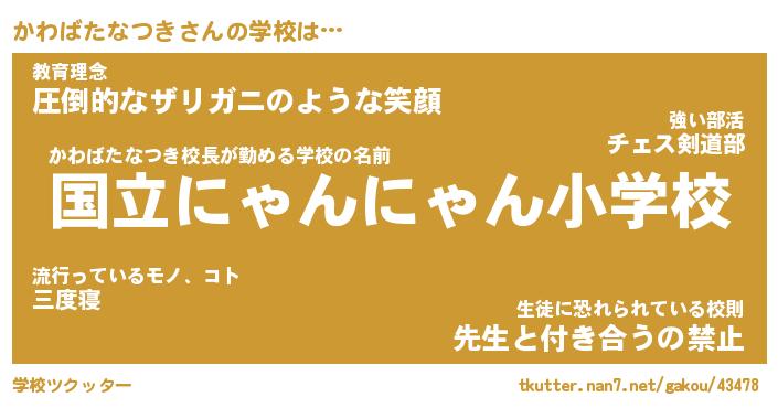 | 伝説のあだ名 | 『伝説のスナイパーかわばたなつき』 |