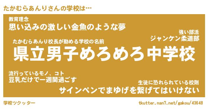 | 伝説のあだ名 | 『不死鳥のスナイパーたかむらあんり』 |
