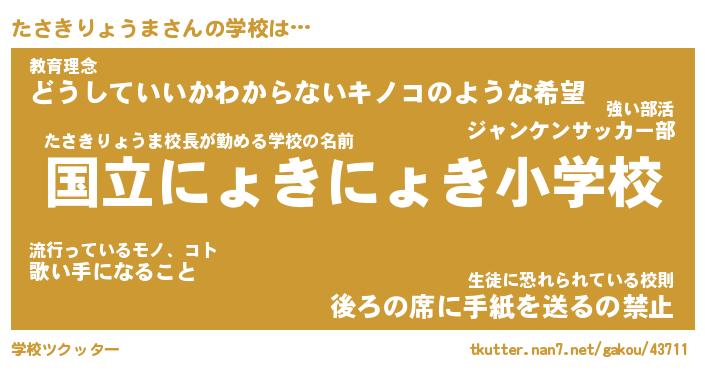 | 男性向けラノベタイトル風あだ名 | 『たさきりょうまの憂鬱』 |