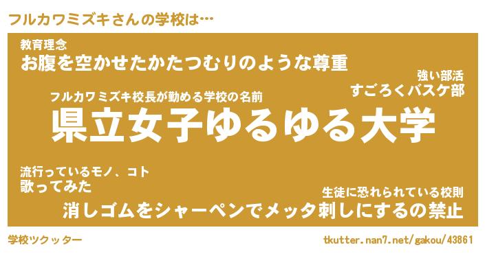 | 伝説のあだ名 | 『封印されしスナイパーフルカワミズキ』 |