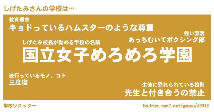 | ヘコむあだ名 | 『しげっふぃ~』『酢こんぶ』 |