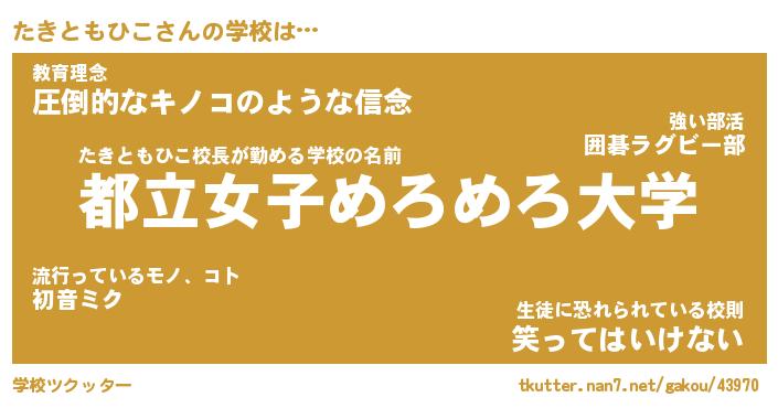 | 肩書あだ名 | 『たきともひこ御曹司』 |