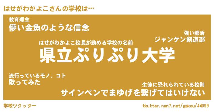| ヘコむあだ名 | 『はせもー』『なまこ酢』『はせお』 |