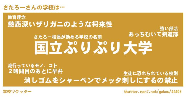 | 伝説のあだ名 | 『伝説のスナイパーさたろー』 |