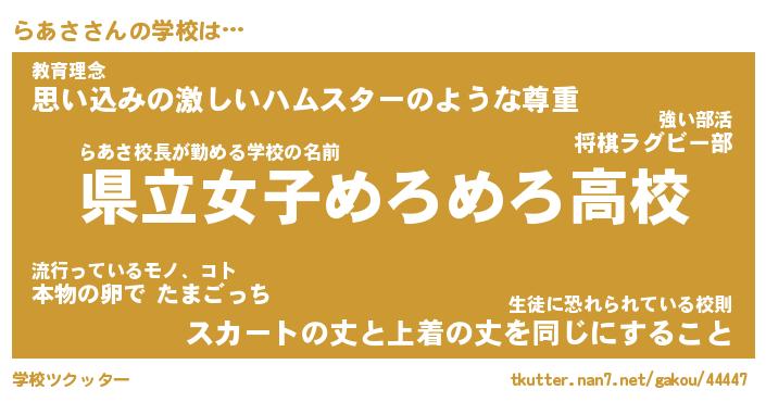 | 意味不明あだ名 | 『ペロリンらあさ』『らあさフォーエバー』 |
