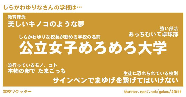 | 伝説のあだ名 | 『封印されしスナイパーしらかわゆりな』 |