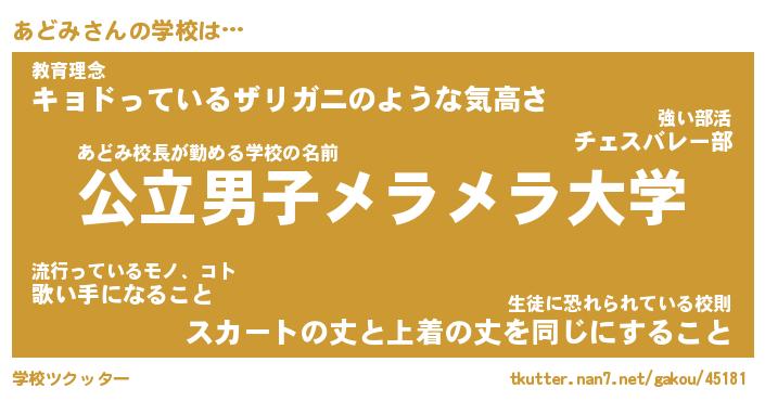 | ヒーロー風カッコイイあだ名 | 『スーパーアドミ』『ウルトラあどみマン』 |