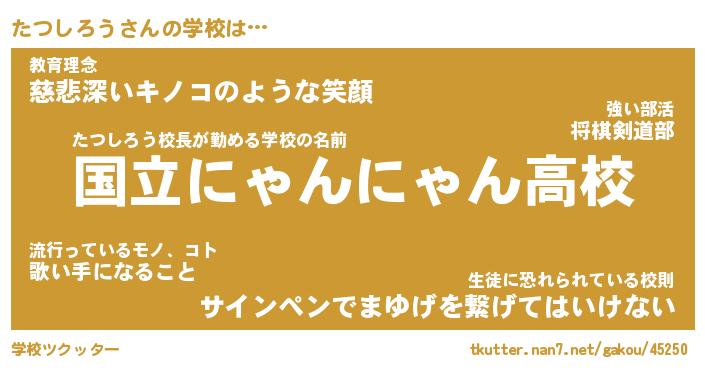 | 男性向けラノベタイトル風あだ名 | 『たつしろうの憂鬱』 |