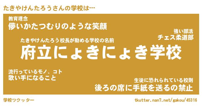 | 男性向けラノベタイトル風あだ名 | 『たきやけんたろうの憂鬱』 |
