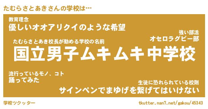 | 男性向けラノベタイトル風あだ名 | 『たむらさとあきの憂鬱』 |