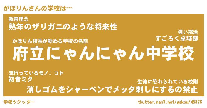 | 男性向けラノベタイトル風あだ名 | 『かほりんの憂鬱』 |