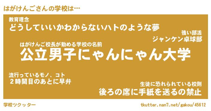| 男性向けラノベタイトル風あだ名 | 『はがけんごの憂鬱』 |