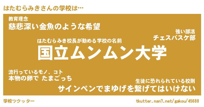 | ヒーロー風カッコイイあだ名 | 『スーパーハタムラミキ』『黄金騎士ハタ』 |
