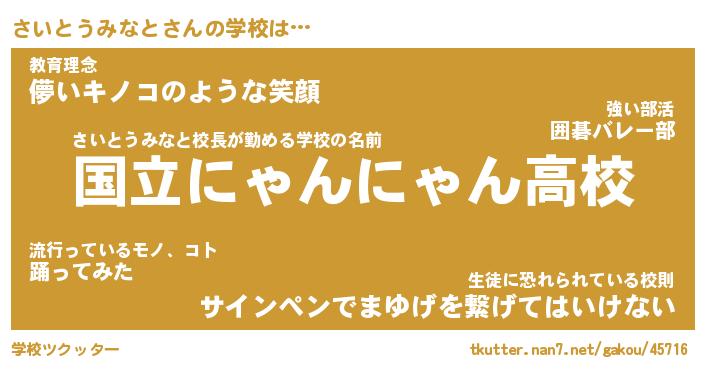 | 男性向けラノベタイトル風あだ名 | 『さいとうみなとの憂鬱』 |